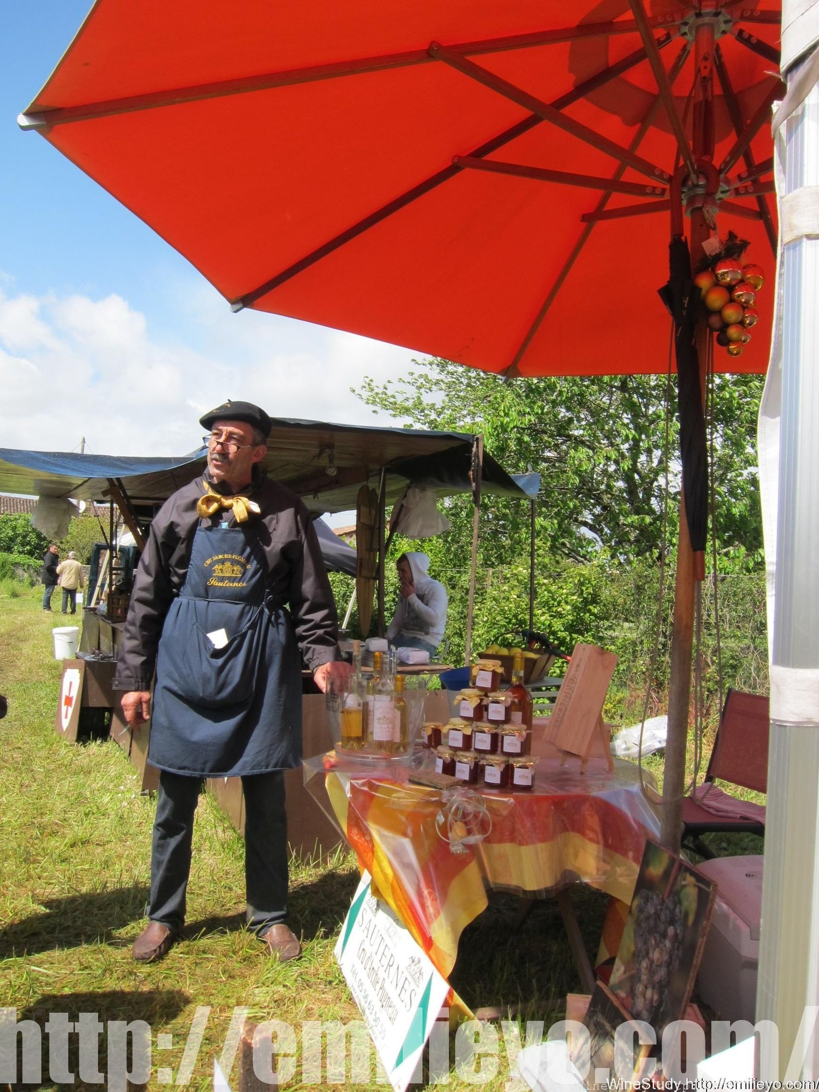 2014.04.26(六)~27(日),一年一度Printemps des Liquoreux,是集合了法國各個產區甜白酒的一個市集。甜酒會的位置在Loupiac高盧-羅馬遺址的旁邊,也因此有些關於”羅馬時代”的相關活動節目(遺址有些小家碧玉就是…)。如果覺得看不夠古老的建築,Cadillac市區還有中世紀的城堡可以參觀。很不巧的,今年因為風太大,戶外的帳篷都快被掀飛了。很多攤位基於安全考量,16h00就收攤了……戶外的品酒會,變數很多。這個市集不知道是不是招商有困難,攤位數跟去年一樣,數量並不多,每個產區僅有1-2間酒莊參加。雖然參加的酒莊數量不多,但是最吸引我的,是他的品酒與配菜1小時的免費課程:”甜白酒與Macaron的美麗邂逅“。常常,單喝甜白酒總讓人覺得膩而厚重,適當的與食物搭配,能帶來更多的滿足感。