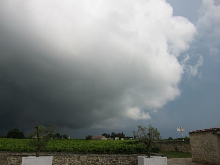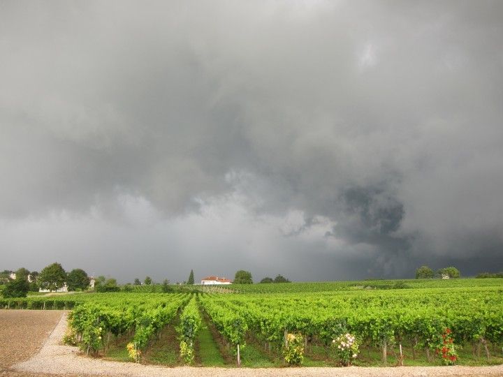 一早來到酒莊,與在葡萄園工作的大叔聊天,他說今天下午氣象預報著,將有暴風雨(orage)的來襲。他提醒我,通常暴風雨一來,酒莊的供電會不穩定,那時最好不要帶遊客到地窖去參觀,要是在參觀的過程停電了,可不好玩。